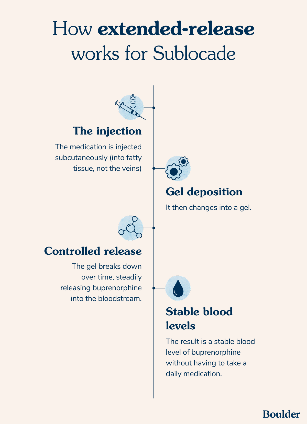 According to Dr. Boustead, Sublocade stabilizes opioid receptors in the brain, just like other forms of buprenorphine. It reduces cravings, prevents withdrawal, and lowers the risk of overdose and death.
